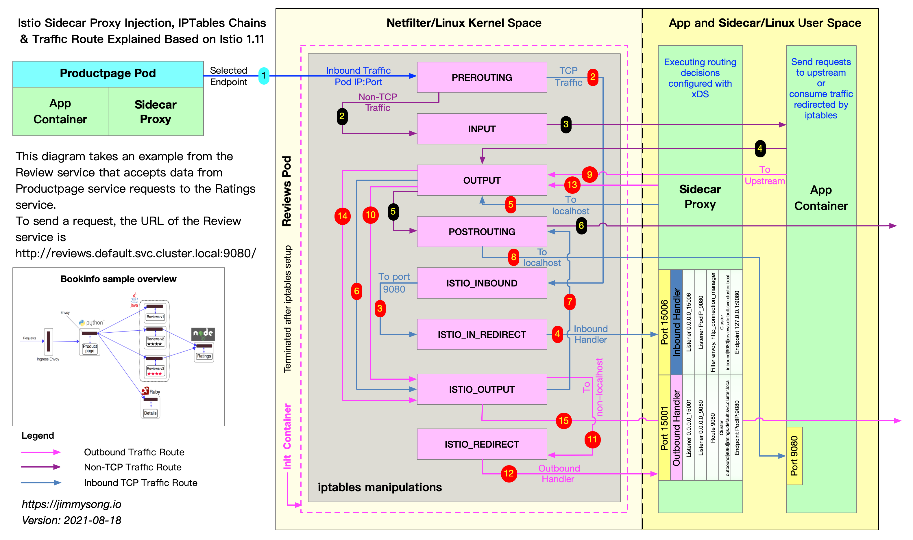 - Sidecar injection and transparent traffic hijacking process in Istio explained in detail por Jimmy Song, Tetrate