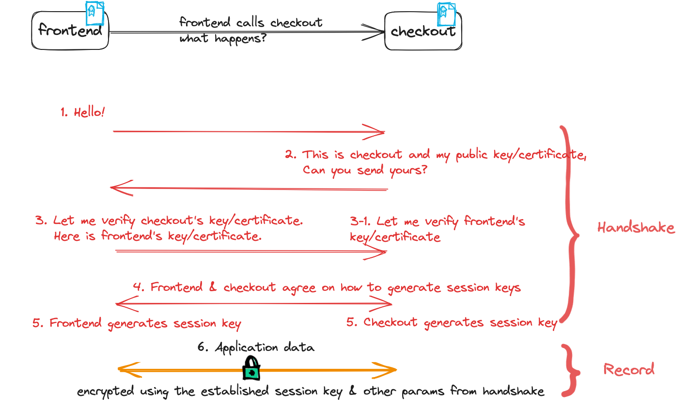 Hemos establecido que las identidades criptográficamente verificables son clave para asegurar canales y soportar la aplicación de políticas de acceso, y hemos establecido que mTLS es un protocolo probado en batalla que requiere algunas garantías extremadamente importantes para usar identidades criptográficamente verificables en ambos extremos de un canal - profundicemos en algunos detalles sobre cómo funciona realmente el protocolo mTLS bajo el capó.